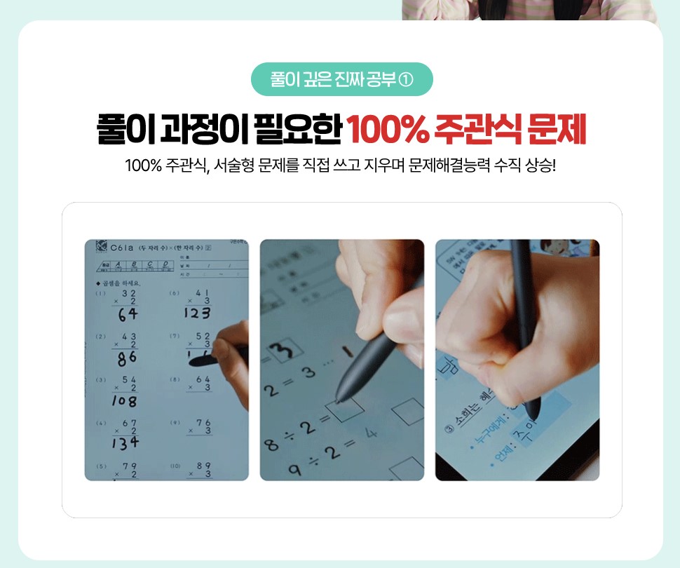 - 종이 학습지의 장점인 '문제 해결 능력 향상을 위한 풀이 과정 작성'을 디지털 환경에서도 구현하였음.