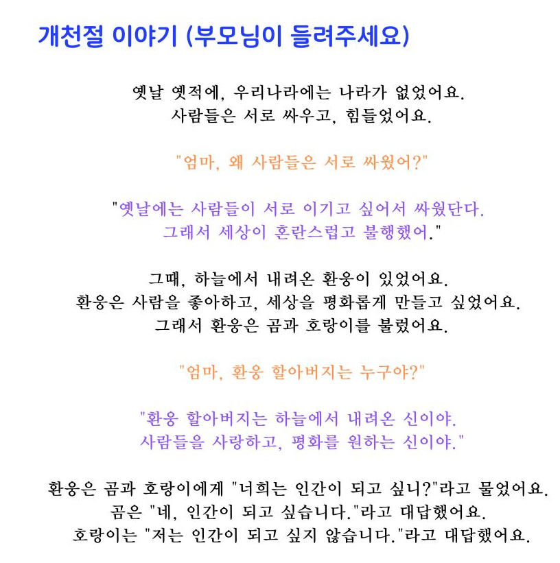 하지만 요즘 아이들에게 개천절이란 단순히 쉬는 날로 인식되곤 합니다.